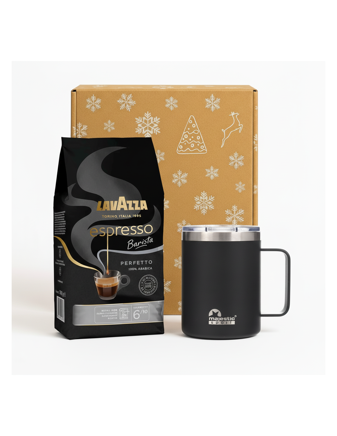 Zestaw świąteczny - kawa ziarnista Lavazza Barista Perfetto Espresso + kubek Gump czarny to klasyczna i elegancka propozycja dla miłośników intensywnej, włoskiej kawy. Zestaw łączy w sobie wysokiej jakości kawę ziarnistą z funkcjonalnym kubkiem termicznym – idealny wybór na prezent świąteczny dla koneserów espresso i osób aktywnych na co dzień.